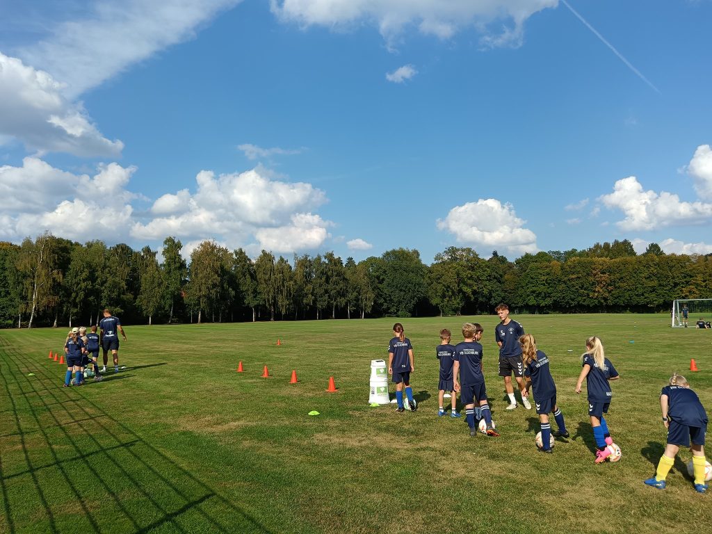 Los ging es mit dem offiziellen Heimspielcamp, das um 15 Uhr mit zwei Stunden Training startete. Als Überraschung gab es für alle Kinder schicke VfB-Trikots. Nach einer kurzen Pause hieß es dann: Aufstellung für den großen Moment!